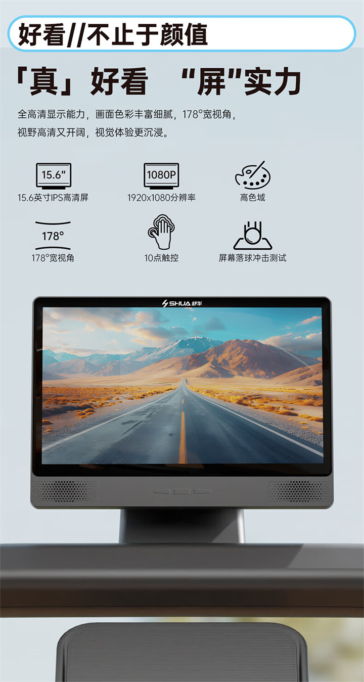 leyu.乐鱼体育推荐健身器材-舒华商用电动跑步机SH-T6500拥有10.1寸IPS高清触摸屏、Z型动感时尚外观设计、70×150mm精钢立柱机身、F级高效静音马达、520mm商用豪华跑带和35mm双层全跑台减震跑板等优势,让您享受科学跑步。